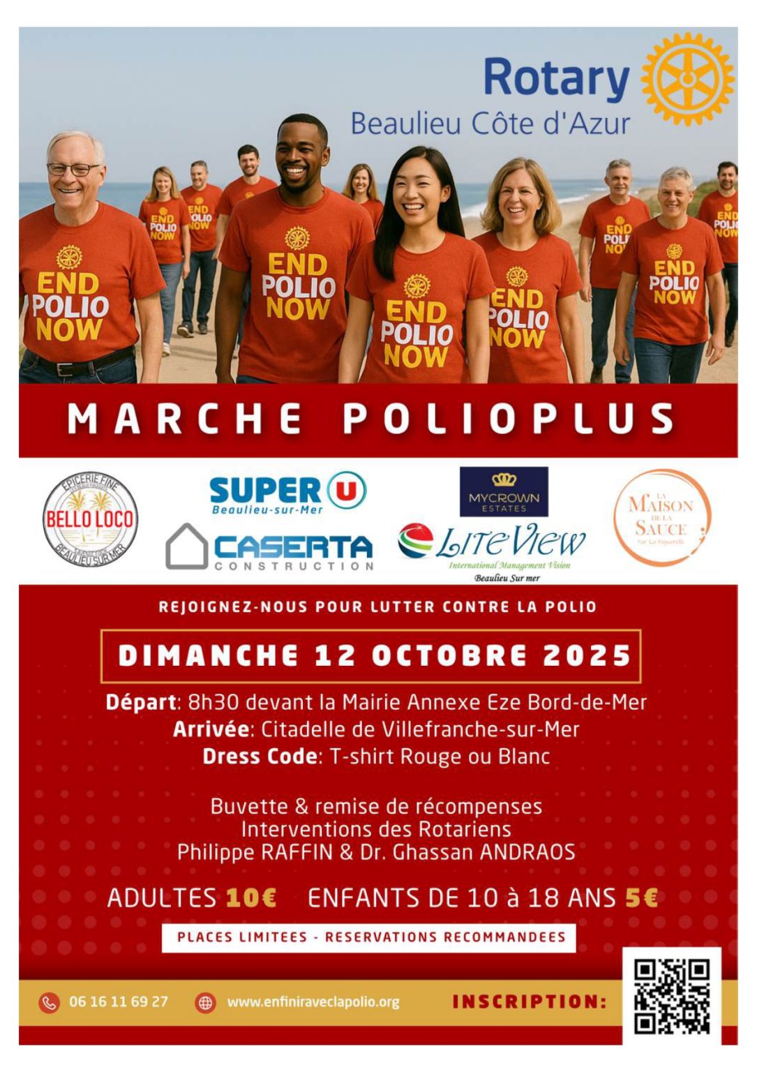 Fidèles à notre vocation de service et de solidarité, nous avons décidé d’organiser une grande marche caritative dans nos communes, allant d'Eze bord de mer à Villefranche-sur-mer, ouverte à toutes celles et ceux qui souhaitent joindre leurs pas à ceux de la lutte contre la polio.